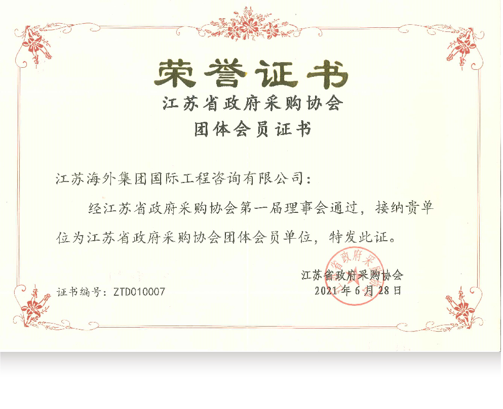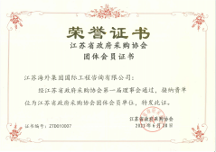 江蘇省政府采購協(xié)會(huì)團(tuán)體會(huì)員證書