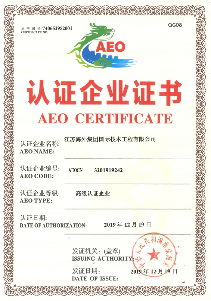 海關高級認證 企業證書 (AEO)