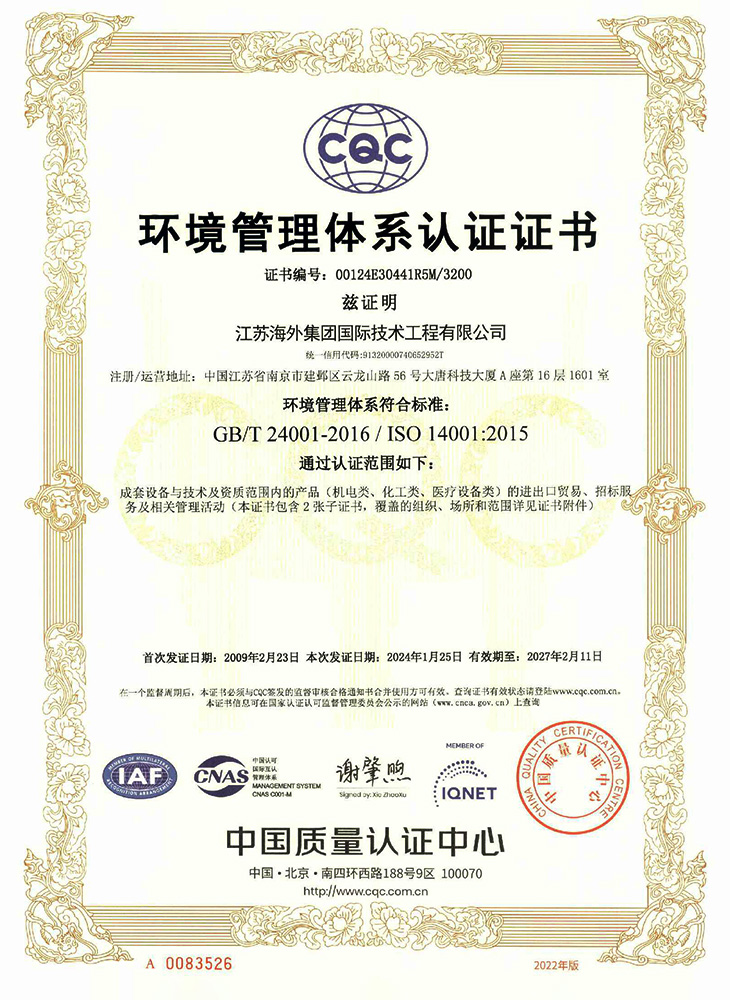 環境管理體系認證證書