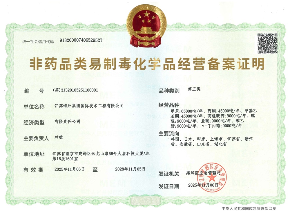非藥品類易制毒化學品經營備案證明